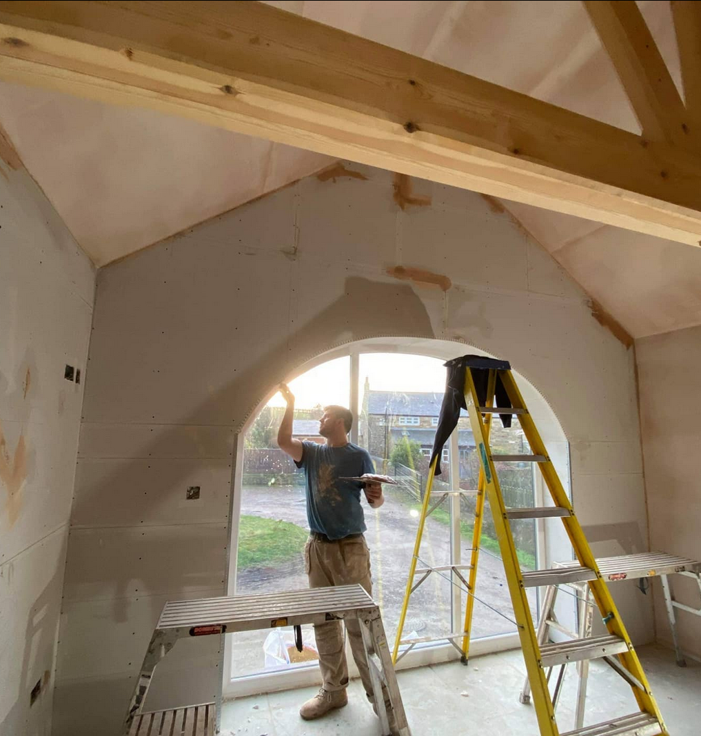 We completed a plasterboard and skimming of an arch within a barn conversion. We love the large windows, high ceilings and exposed timber within this build.